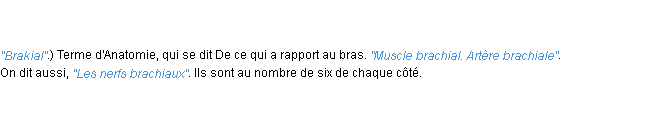 Ancienne définition de « brachial » de source académique (Académie Française, parution de 1835).