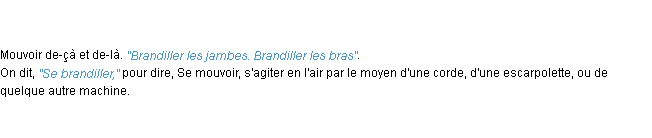 Ancienne signification du terme « brandiller », parution de 1835, dictionnaire académique Français.