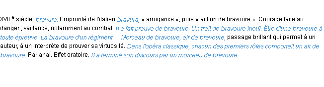 Ancienne définition de « bravoure » de source académique (Académie Française, parution de 1835).