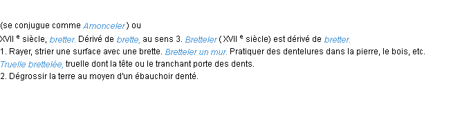 Définition académique pour le terme « bretteler » (parue en 1986).