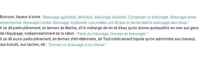 Signification du terme « breuvage », parution de 1932, dictionnaire académique Français.