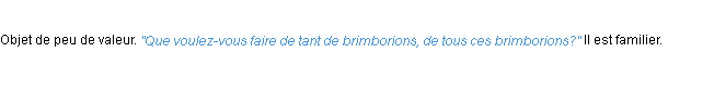 Ancienne signification parue en 1798 dans dictionnaire de l’Académie Française.Merci à Fifi et Renaud pour la numérisation du mot brimborion.