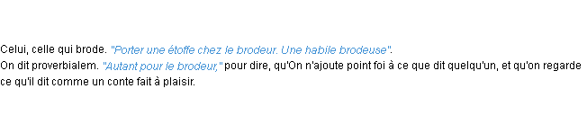 Ancienne signification éditée en 1835 pour le terme « brodeur » par l’Académie Française.