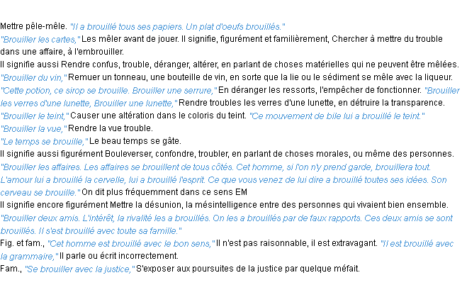 Ancienne définition de l’Académie Française (édition de 1835) pour le mot « brouiller ».