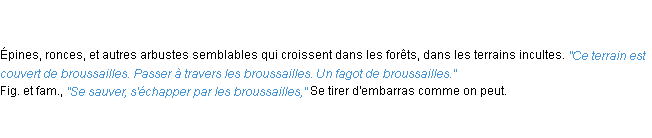 Ancienne définition de « broussailles » de source académique (Académie Française, parution de 1835).