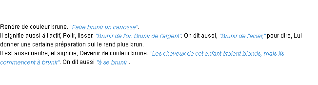 Signification du terme « brunir », parution de 1986, dictionnaire académique Français.
