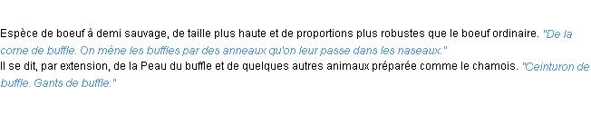 Définition académique pour le terme « buffle » (parue en 1986).