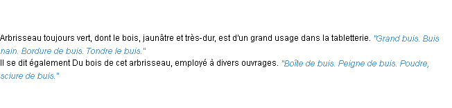 Ancienne définition du mot « buis » par l’Académie Française (édition de 1798).