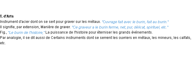 Ancienne définition « burin » du dictionnaire académique Français, parution de l’année 1835.