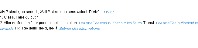 Signification du terme « butiner », parution de 1986, dictionnaire académique Français.