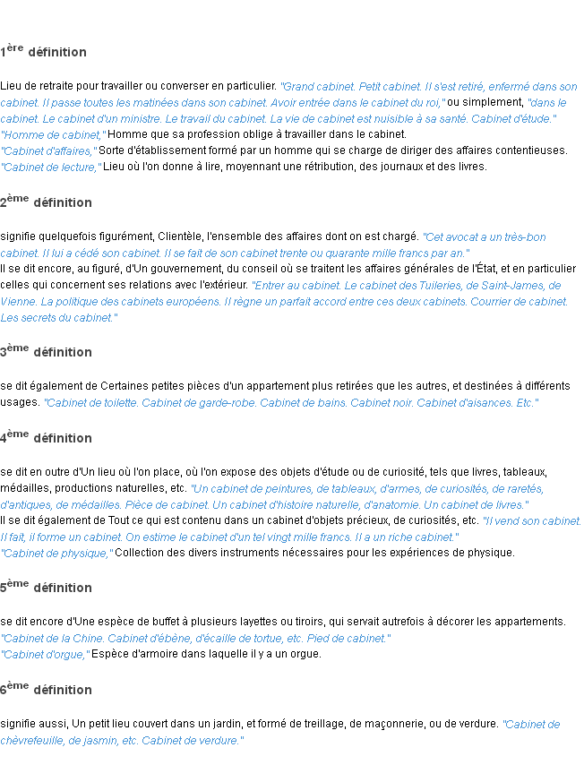 Signification du terme « cabinet », parution de 1932, dictionnaire académique Français.