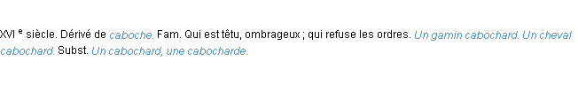 Signification éditée par l’Académie Française, année 1932.Merci à Sébastienne et Arnaude pour la numérisation du mot cabochard.