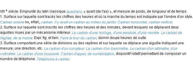 Définition de l’Académie Française (édition de 1986) pour le mot « cadran ».