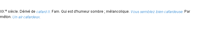 Définition du mot « cafardeux » par l’équipe de la-definition.fr (édition de 2011).Merci à Marielle et Virginie pour la numérisation du mot cafardeux.
