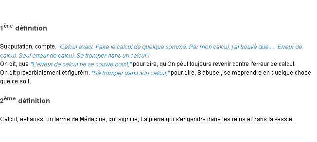 Ancienne définition « calcul » du dictionnaire académique Français, parution de l’année 1835.