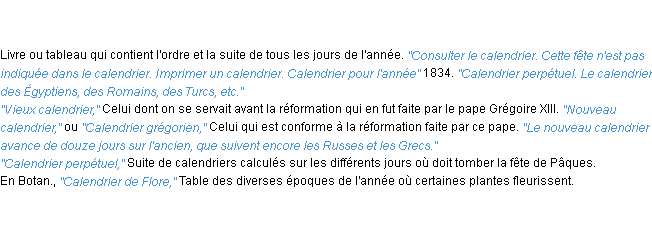 Signification éditée en 1932 pour le terme « calendrier » par l’Académie Française.