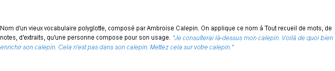 Signification éditée en 1932 pour le terme « calepin » par l’Académie Française.