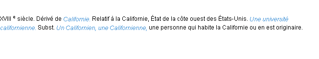 Signification éditée en 2008 pour le terme « californien » par l’équipe de wiktionary France.
