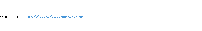 Ancienne signification éditée en 1835 pour le terme « calomnieusement » par l’Académie Française.