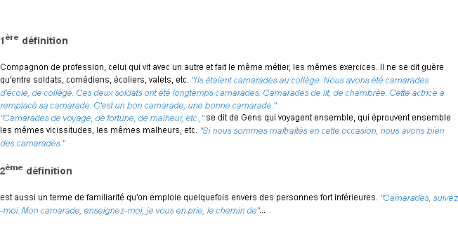 Définition du mot « camarade » par l’Académie Française (édition de 1932).