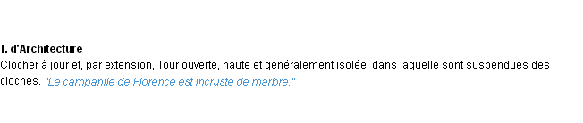 Ancienne définition de « campanile » de source académique (Académie Française, parution de 1835).