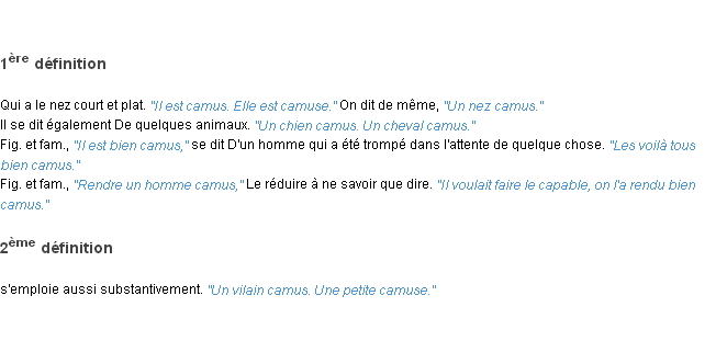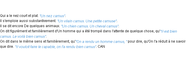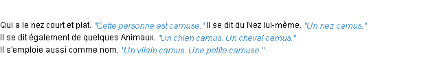 Signification du terme « camus », parution de 1932, dictionnaire académique Français.