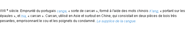 Définition du mot « cangue » (source wiktionary 2011).- Autres Recherches