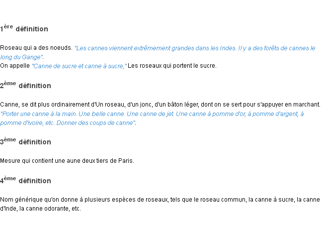 Ancienne définition « canne » du dictionnaire académique Français, parution de l’année 1835.