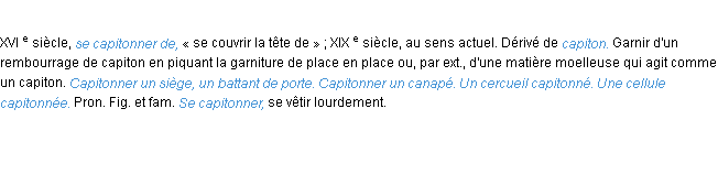 Définition d’Emile Littré (édition de 1876) pour le mot « capitonner ».Merci à Edwige et Théodore pour la numérisation du mot capitonner.