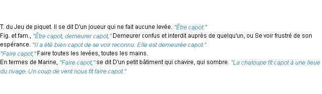Signification du terme « capot », parution de 1932, dictionnaire académique Français.