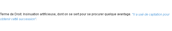 Signification éditée en 1876 pour le terme « captation » par Emile Littré.