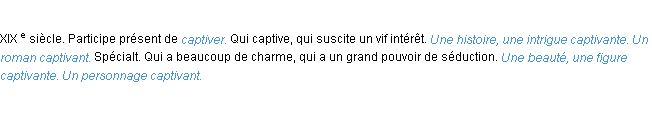 Signification éditée en 1932 pour le terme « captivant » par l’Académie Française.Merci à Noella et Sylviane pour la numérisation du mot captivant.
