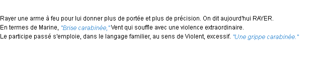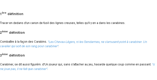 Définition du mot « carabiner » par Emile Littré (édition de 1876).Merci à Jeannette et élodie pour la numérisation du mot carabiner.
