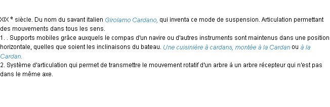 Définition du mot « cardan » (source wiktionary 2011).Merci à Emmanuelle et Gaspard pour la numérisation du mot cardan.