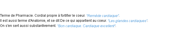 Définition académique pour le terme « cardiaque » (parue en 1932).