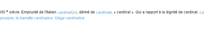 Définition du mot « cardinalice » par Emile Littré (édition de 1876).Merci à Baudouin et Ozanne pour la numérisation du mot cardinalice.