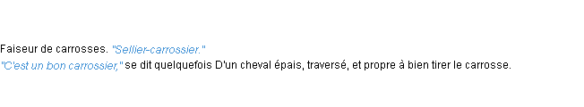 Ancienne définition de « carrossier » de source académique (Académie Française, parution de 1835).