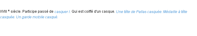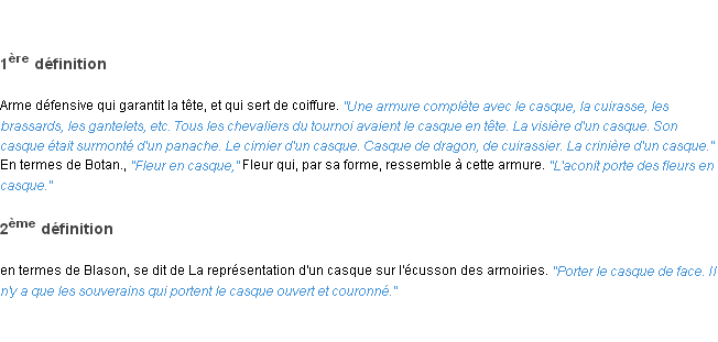 Ancienne définition de l’Académie Française (édition de 1798) pour le mot « casque ».