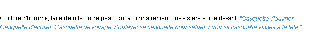 Ancienne définition de « casquette » de source académique (Académie Française, parution de 1835).