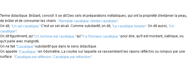 Définition « caustique » du dictionnaire académique Français, parution de l’année 1986.