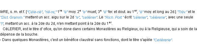 Signification du terme « cellerier », parution de 1788 (dictionnaire de Mr Féraud).