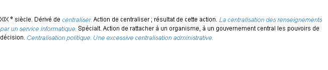 Définition du mot « centralisation » par l’équipe de la-definition.fr (édition de 2011).Merci à Eléonore et Aurore pour la numérisation du mot centralisation.