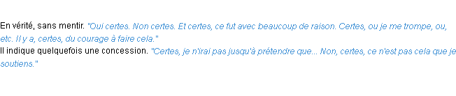 Ancienne définition académique pour le terme « certes » (parue en 1798).
