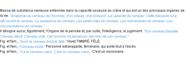 Ancienne définition développée dans dictionnaire académique, 1798.Merci à Charlot et Hercule pour la numérisation du mot cerveau.