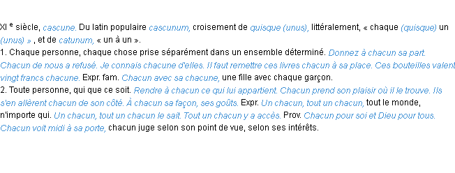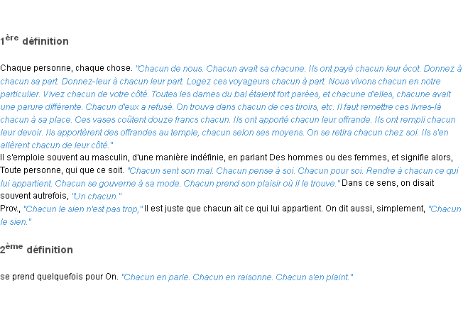 Ancienne signification éditée en 1835 pour le terme « chacun » par l’Académie Française.