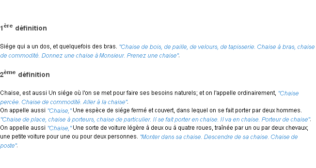 Définition du mot « chaise » par l’Académie Française (édition de 1932).
