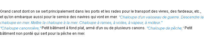 Signification éditée en 1986 pour le terme « chaloupe » par l’Académie Française.