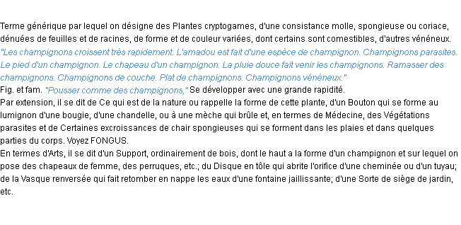 Définition de l’Académie Française (édition de 1986) pour le mot « champignon ».