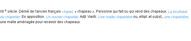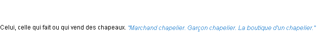Définition académique pour le terme « chapelier » (parue en 1986).