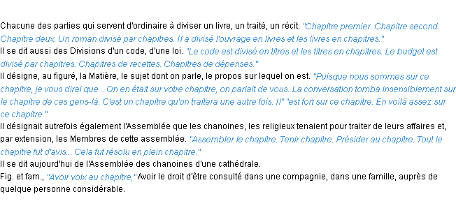 Signification du terme « chapitre », parution de 1932, dictionnaire académique Français.